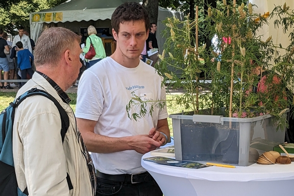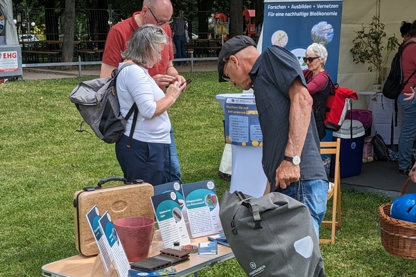 New bioeconomic approaches for plant protection were presented, e.g. through the use of biosurfactants, and innovative bioeconomy products made from renewable raw materials were shown. Last but not least, visitors were asked their opinions as consumers in surveys on the cultivation of lupins as a new type of protein source, e.g. for the food sector, and on the use of lignin, a component of wood, for the production of textiles. Even the youngest visitors were involved by selecting the “most beautiful” sand toys made from renewable raw materials or conventional materials. All participants enjoyed an informative day in perfect weather.