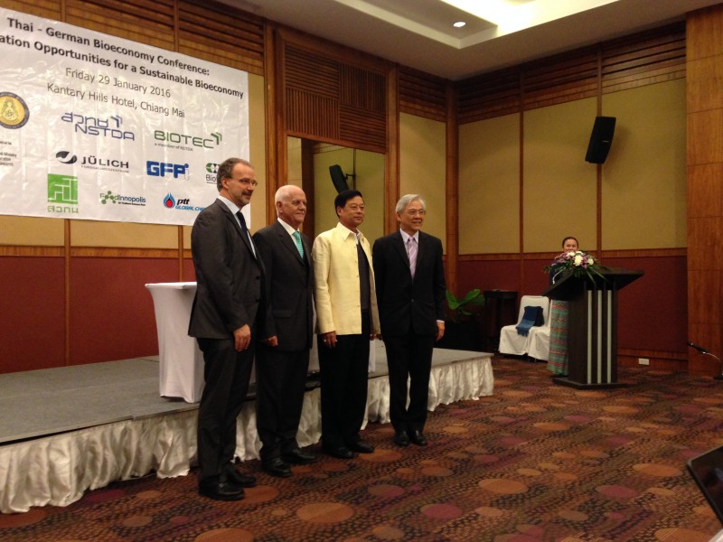 Über einen weiteren Ausbau der bereits bestehenden Thailändisch-Deutschen Forschungskooperationen wurde am 28. und 29. Januar in Bangkok und Chiang Mai diskutiert. Botschafter Peter Prügel eröffnete zusammen mit Dr. Thaweesak Koanantakool, dem Präsidenten der National Science and Technology Development Agency, die zweitägige "Thai-German Bioeconomy Conference" im Queen Sirikit National Convention Center in Bangkok. An der Konferenz nahmen insgesamt über 400 internationale Besucher teil. Mehr Informationen finden sich unter http://www.biotec.or.th/Bioeconomy2016.
