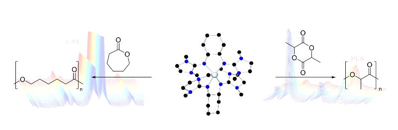 In der weiteren Zusammenarbeit wurde ein neuer, robuster Zink-Bisguanidin-Katalysator für die Polymerisation der nachwachsenden Monomere Lactid und e-Caprolacton entwickelt. Die beiden zyklischen Monomere können über die katalytische Ringöffnungspolymerisation zu den bioabbaubaren Polyestern Polylactid und Polycaprolacton transformiert werden. Polylactid ist derzeit der mit am häufigsten produzierte Biokunststoff. Der in der Industrie am meisten verwendete Katalysator in der Polymerisation von Lactid ist ein Komplex, der das Metall Zinn beinhaltet und zellschädigend ist. Der Katalysator, der zwar die Reaktion lediglich steuert und nicht „verbraucht“ wird, kann nur schwer aus dem Polymer entfernt werden und verbleibt daher aus wirtschaftlichen Gründen im Kunststoff. Der Kunststoff, der sich innerhalb von 90 Tagen zu 90 Prozent unter industriellen Kompostierbedingungen zersetzen kann, hinterlässt das toxische Metall im Kompost und stellt somit eine Gefahr für die Umwelt dar.