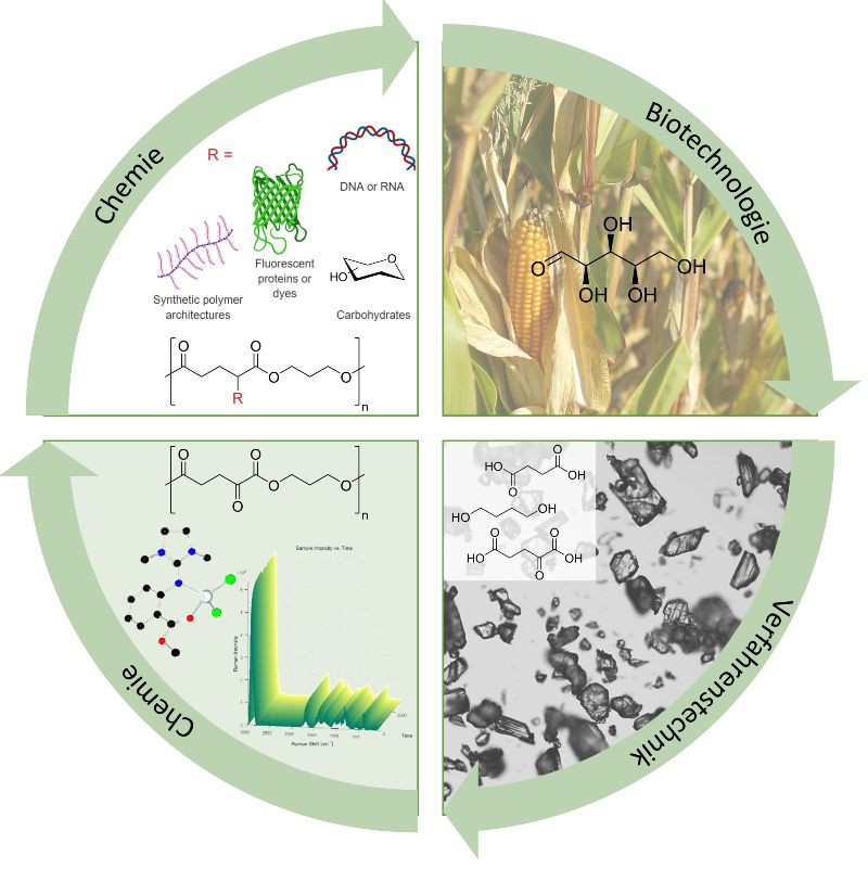 Im Projekt „R2HPBio“ wurde ein integrativer Ansatz entlang der ganzen Wertschöpfungskette für die Herstellung von Biokunststoffen verfolgt. Ein speziell entwickeltes Kristallisationsverfahren reinigt aus einer Fermentationsbrühe eine Bandbreite an potenziellen Plattformchemikalien auf. Diese werden mit neuartigen Katalysatoren zu Kunststoffen verarbeitet, welche durch nachfolgende Modifikationen mit maßgeschneiderten Eigenschaften versehen werden können. Die so entstehenden Materialien sind bioabbaubar, aus nachwachsenden Rohstoffen herstellbar und haben Potenzial für eine Vielzahl praktischer Anwendungen.