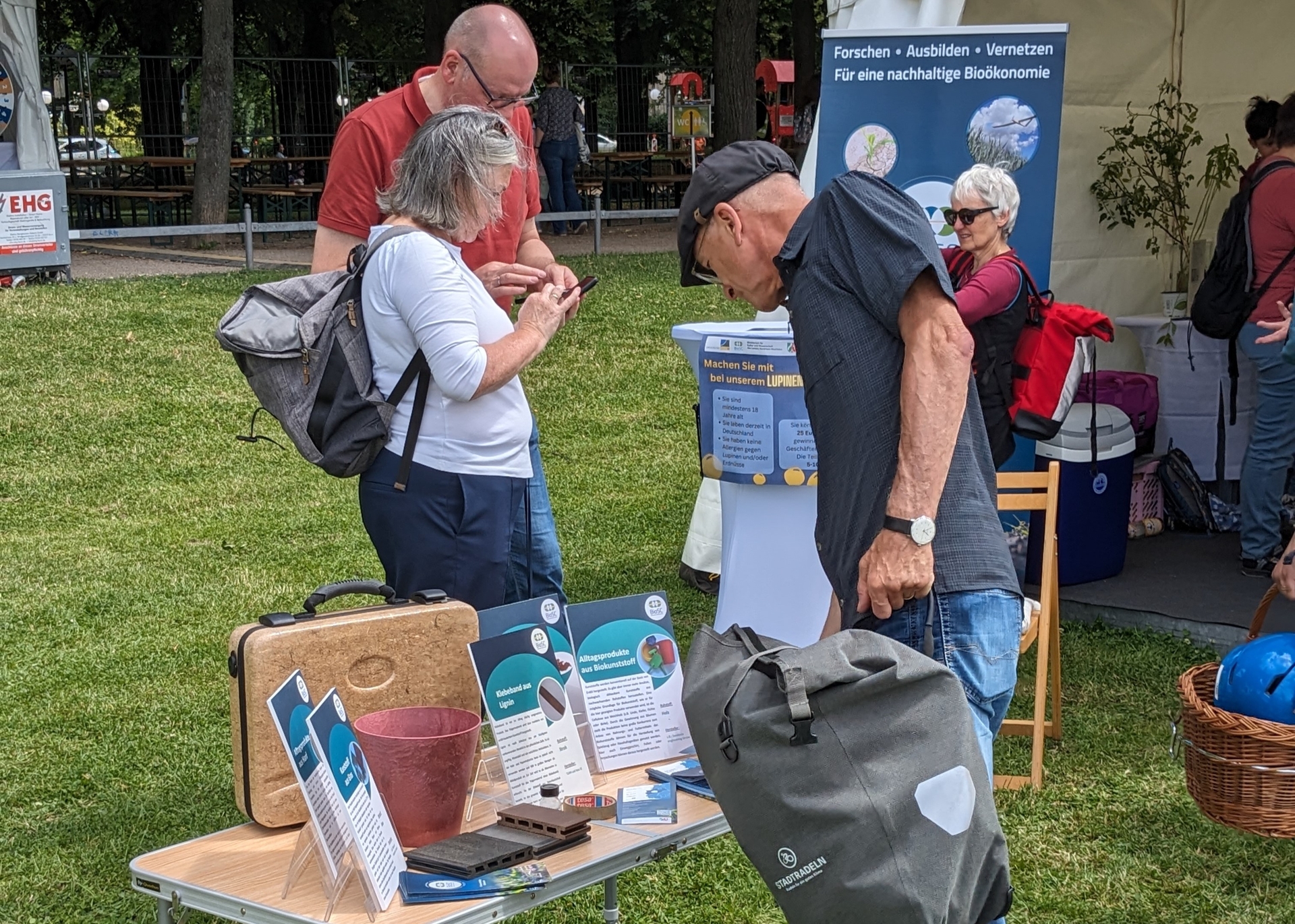 New bioeconomic approaches for plant protection were presented, e.g. through the use of biosurfactants, and innovative bioeconomy products made from renewable raw materials were shown. Last but not least, visitors were asked their opinions as consumers in surveys on the cultivation of lupins as a new type of protein source, e.g. for the food sector, and on the use of lignin, a component of wood, for the production of textiles. Even the youngest visitors were involved by selecting the “most beautiful” sand toys made from renewable raw materials or conventional materials. All participants enjoyed an informative day in perfect weather.
